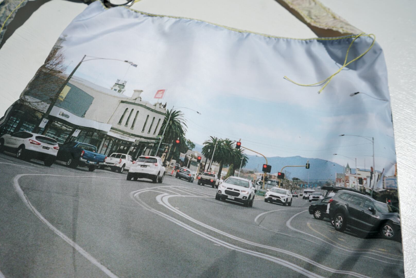 今回、プリントのモチーフに選ばれたのは、カンガルーが点在する公園と街の風景を切り取った交差点。