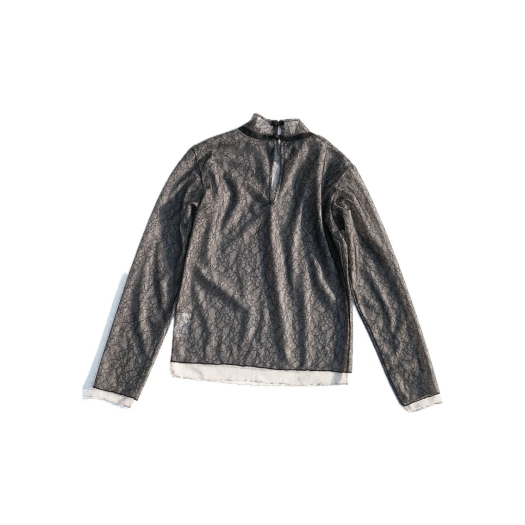 合わせるインナーに困ったらとりあえず”Fumiku”の”Sheer Lace Top”。
