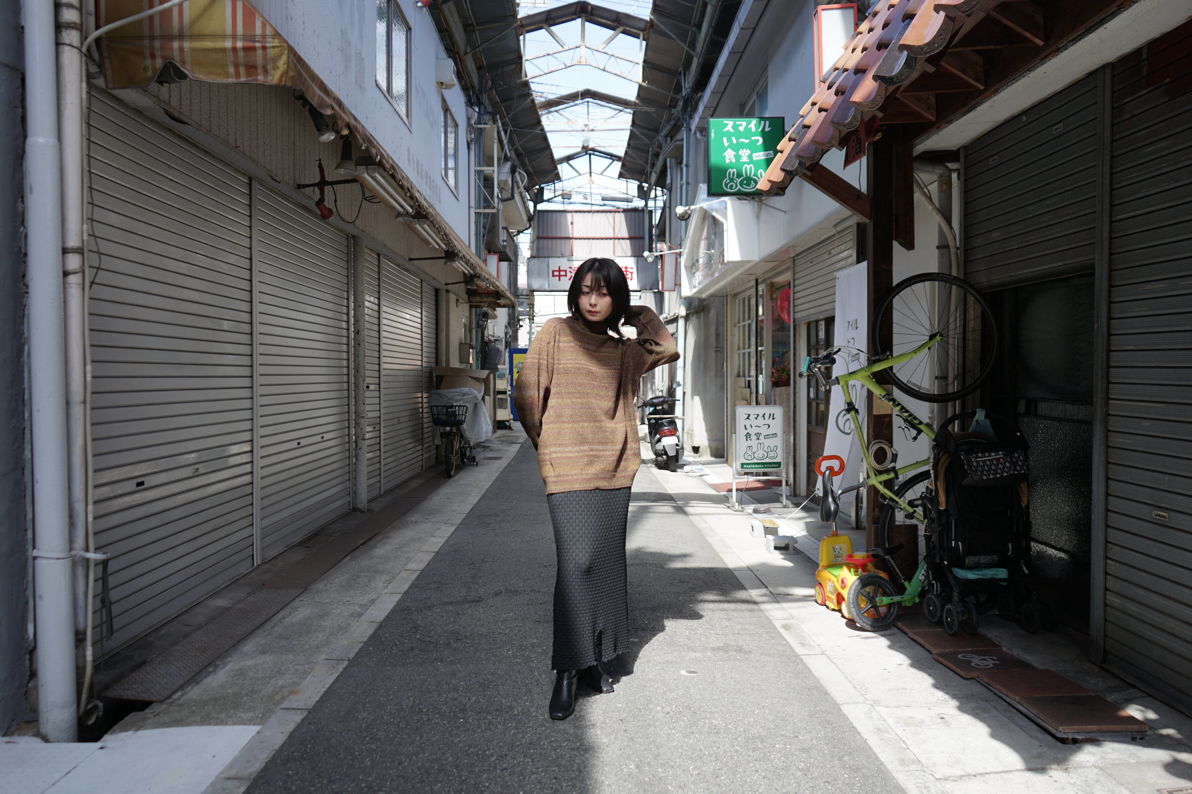 ちなみに、オススメのポイントはやっぱりシルエットになるのだけど、首元のボタンを開閉して、少しアシンメトリーなタートルに見せれるのもポイントだ。
