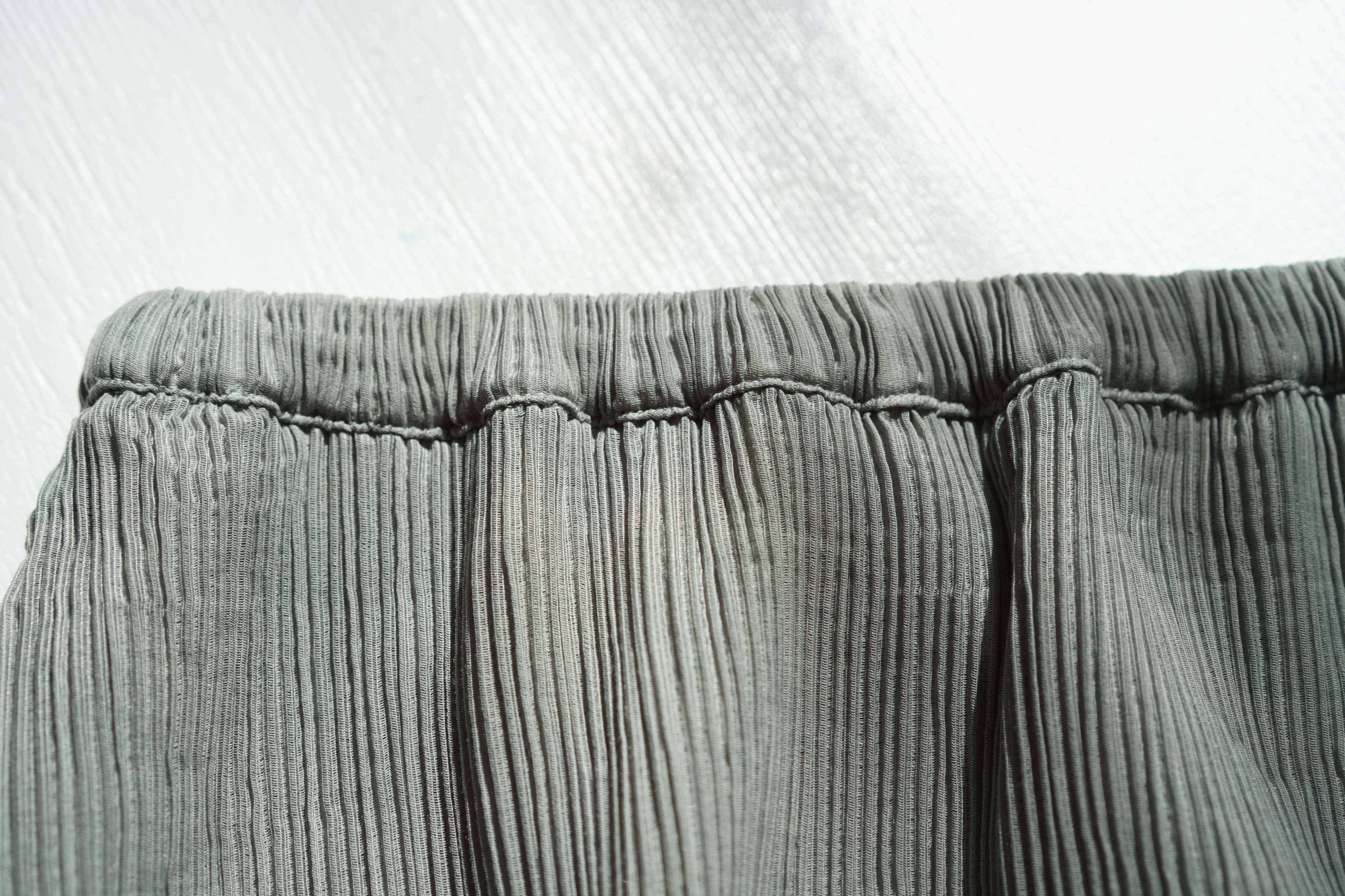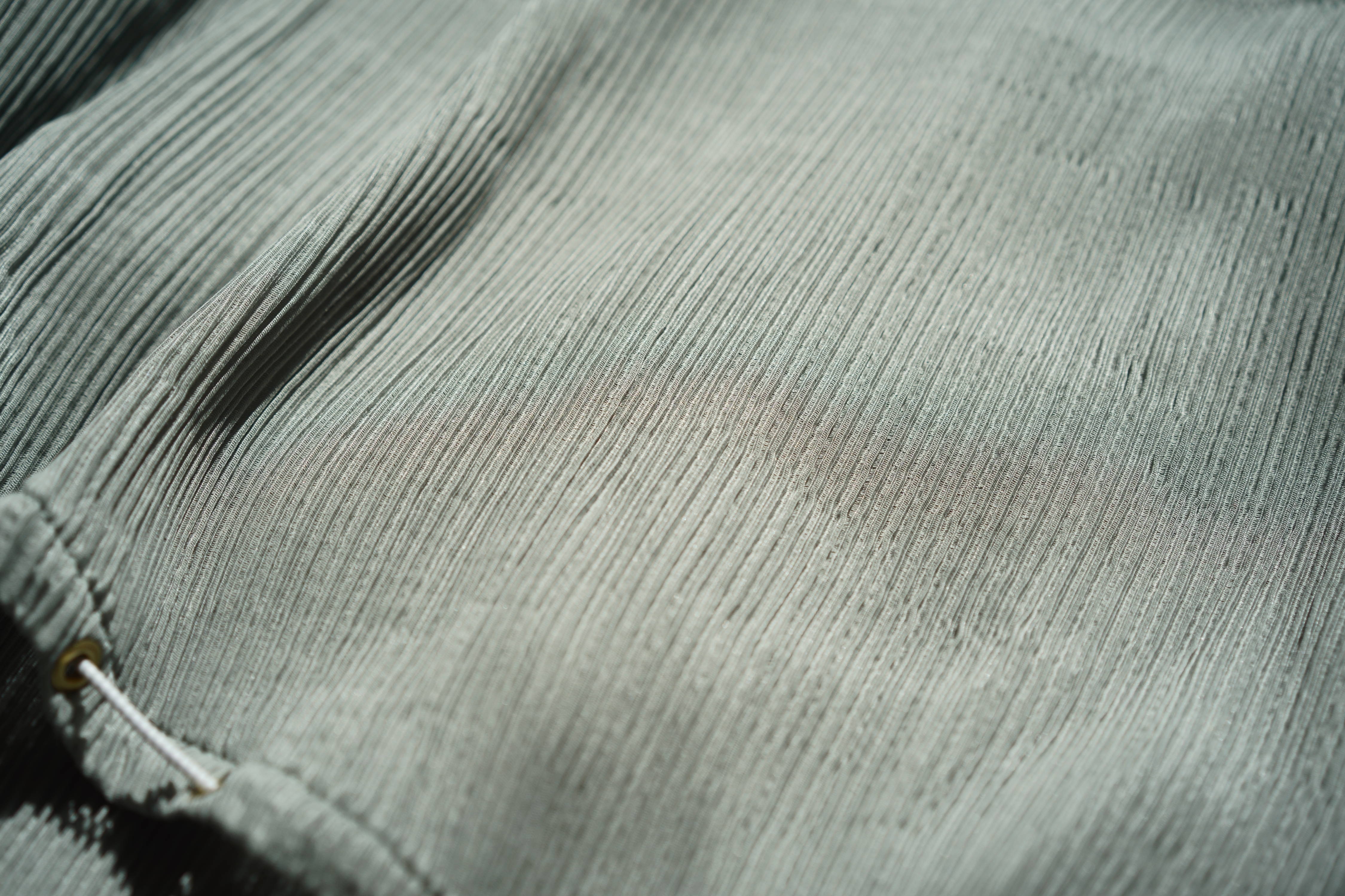 伸縮性のある糸を用いて素材を作ることで、非常に伸びのある素材となる。