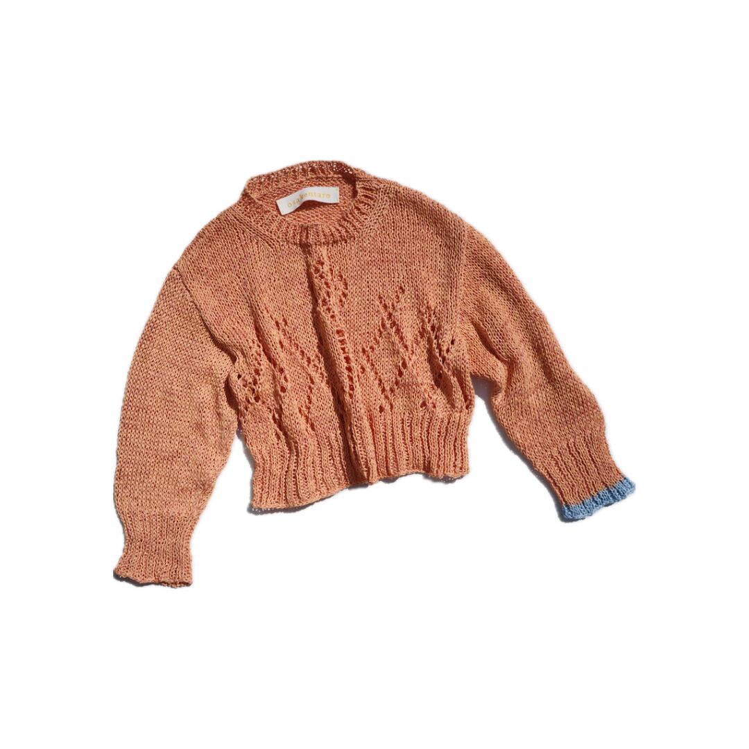 柔らかなオレンジ色が目を引く”osakentaro”のサマーニット。