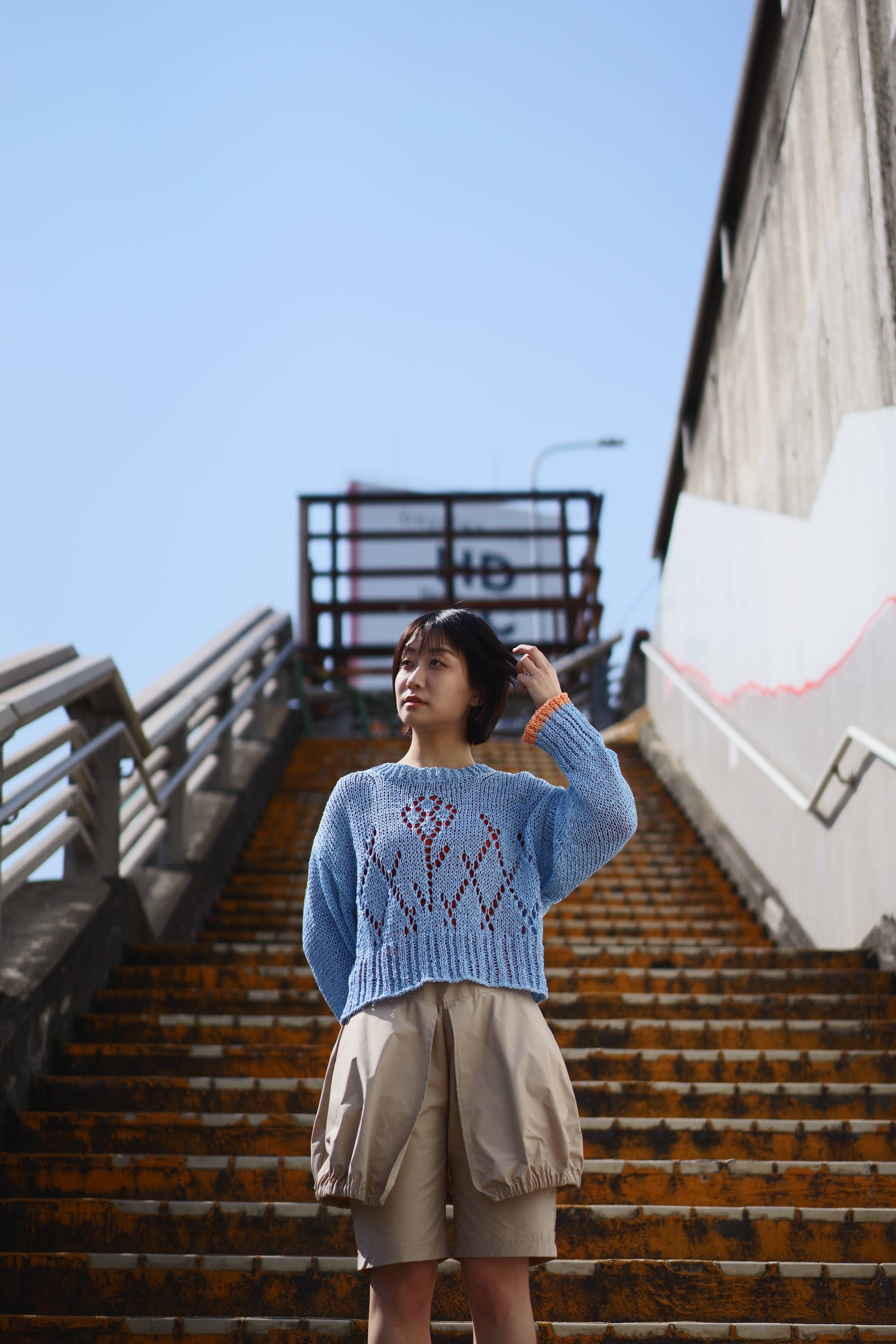 爽やかな水色が目を引く”osakentaro”のサマーニット。