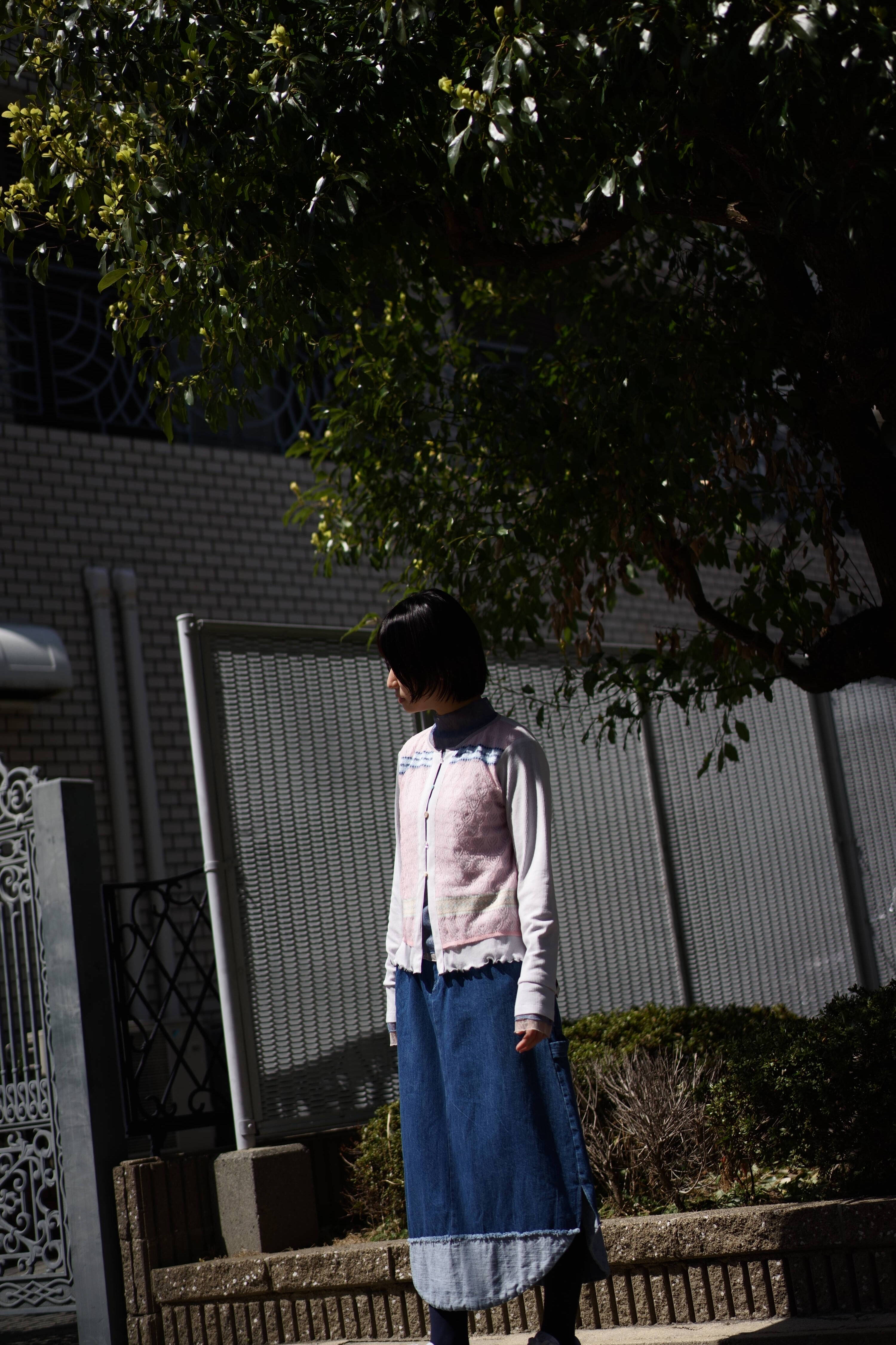 すっきりとしたシルエットのカーディガンとなるので、ワイドなパンツや広がりのあるスカートと合わせて、繊細さを活かすようなスタイリングだったり、あえてデニムのようなカジュアルなアイテムと合わせてギャップを楽しんでみたりするのがオススメだ。