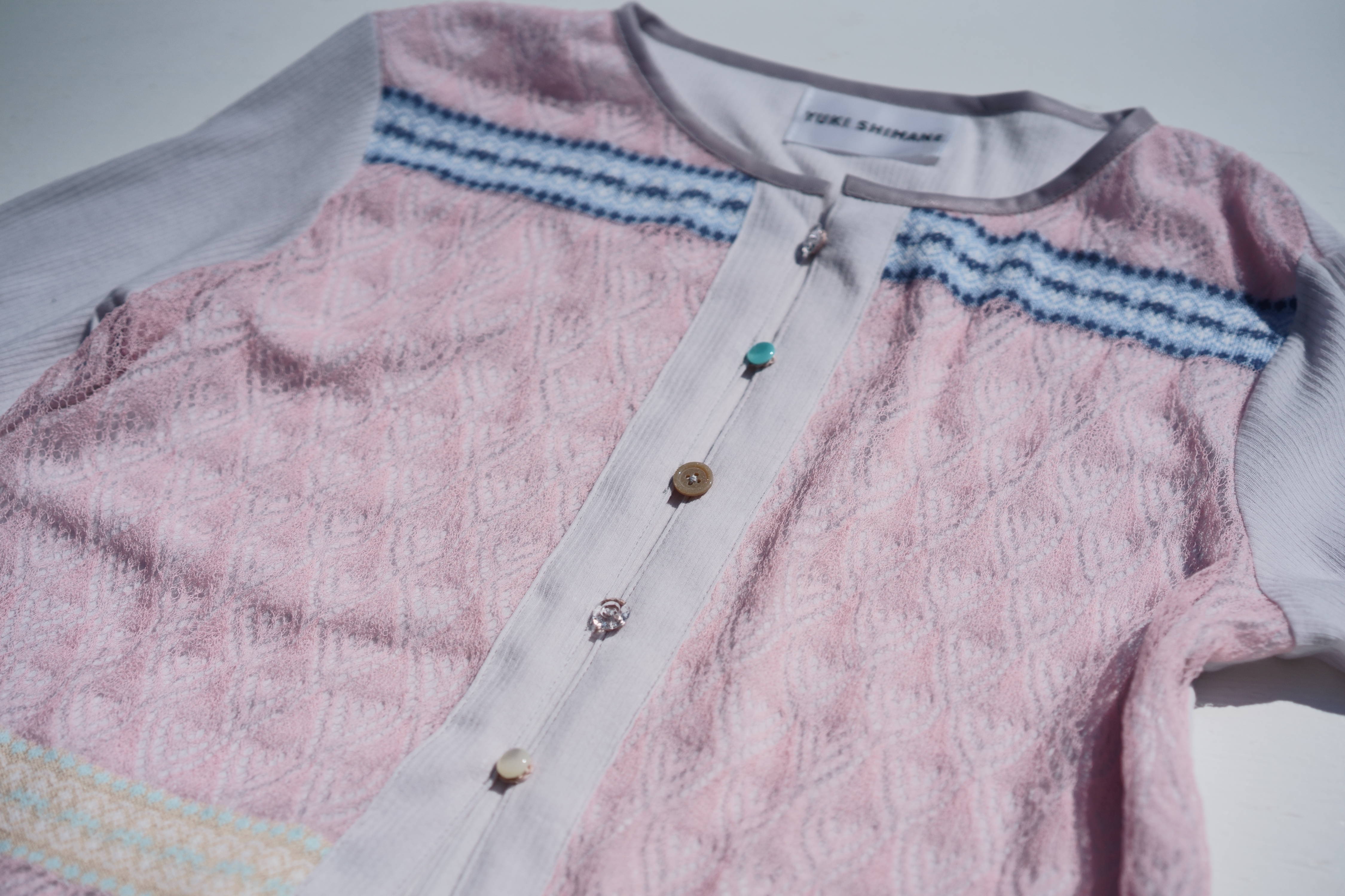【YUKI SHIMANE】Vintage folk lace Sheer Rib Cardigan (Pink)