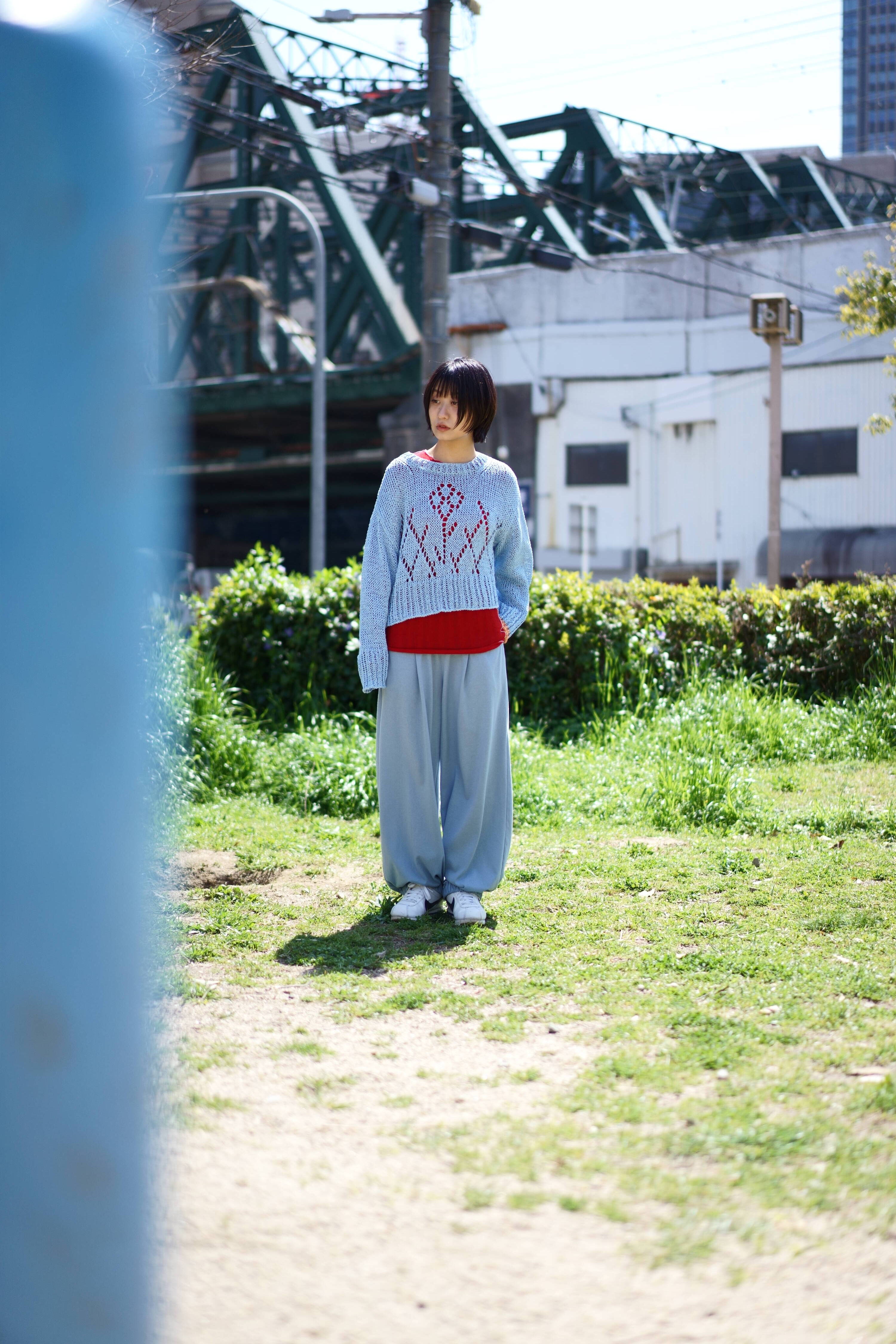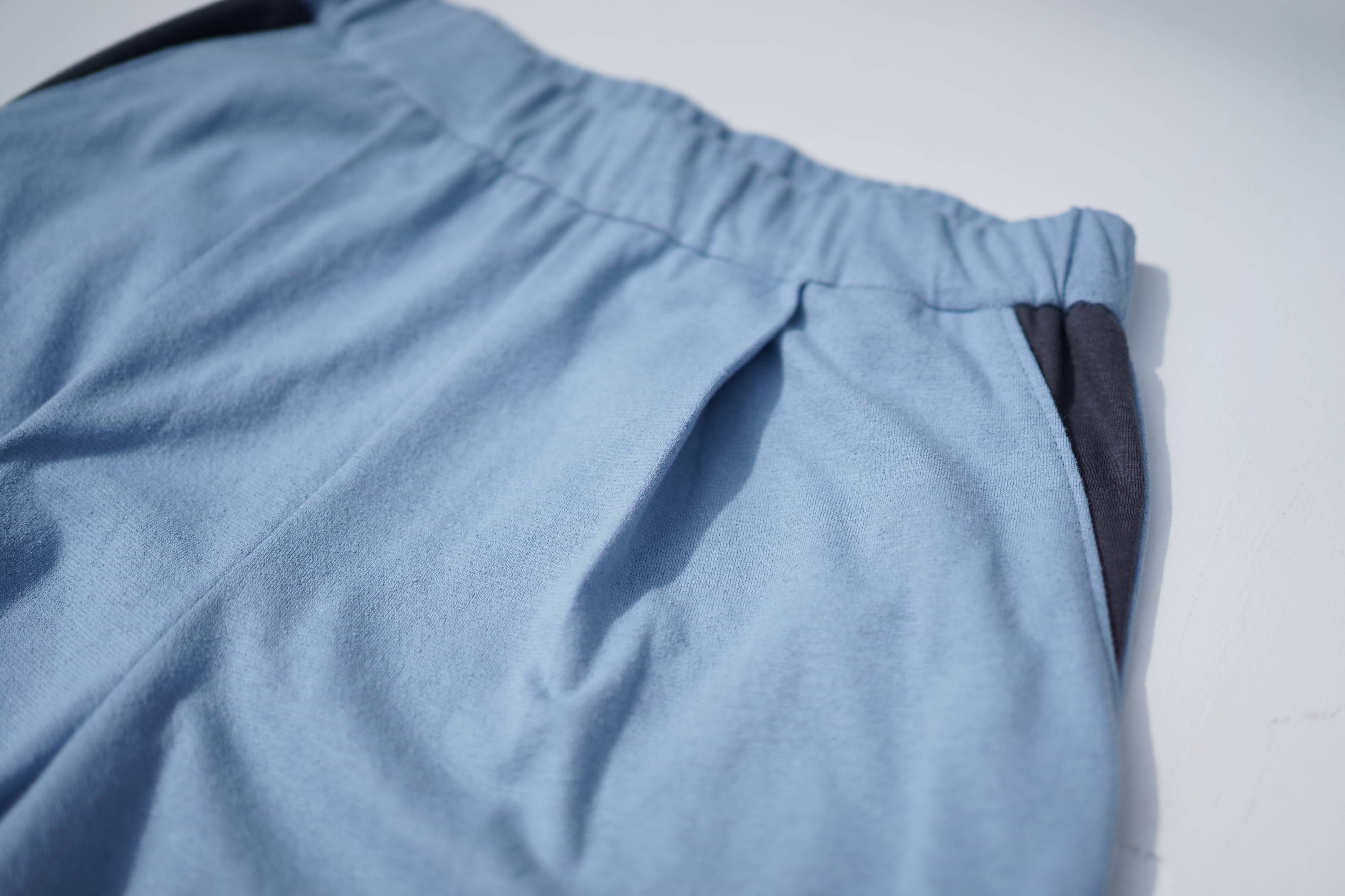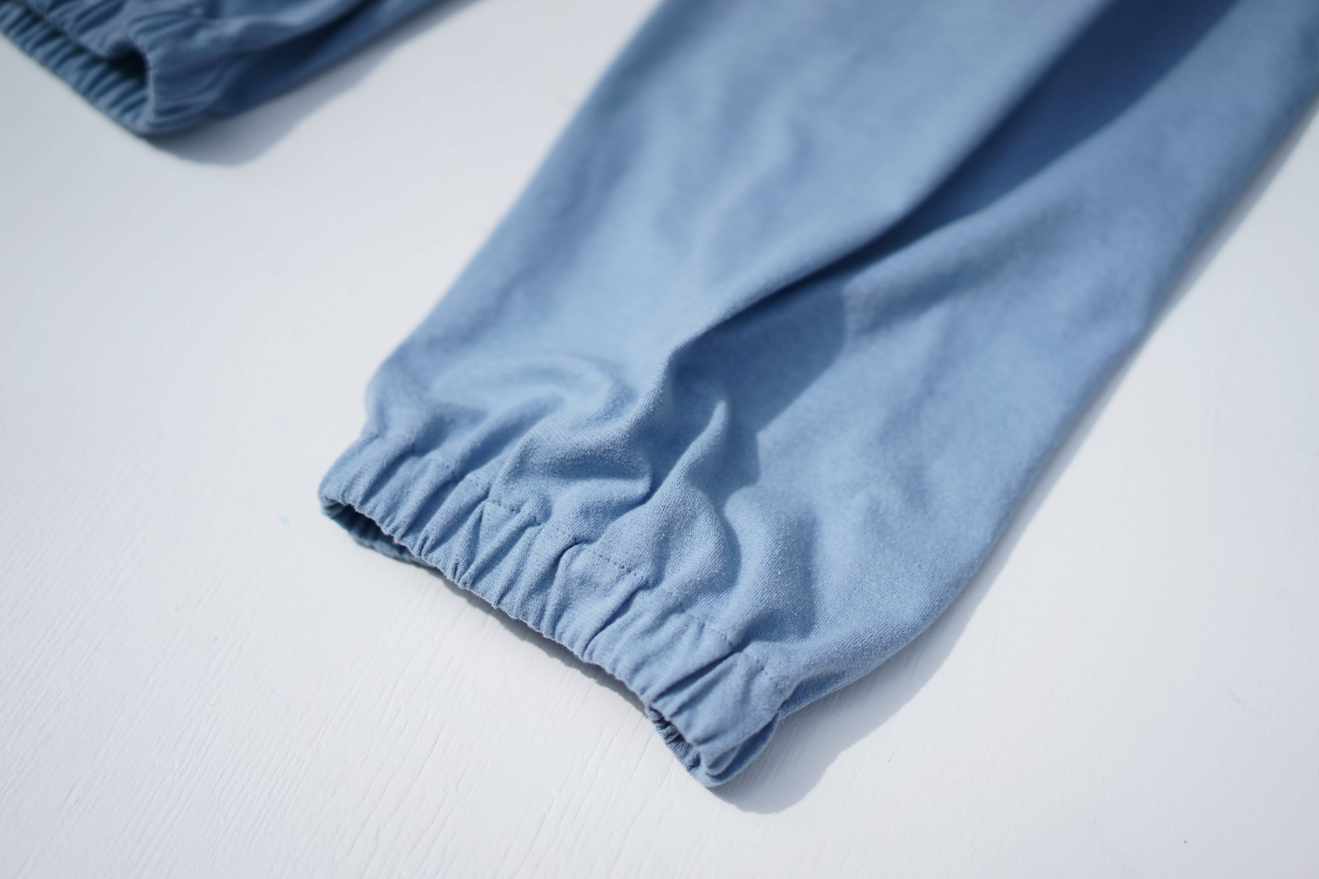 爽やかなブルーが美しい”YUKI SHIMANE”のスウェットパンツ。