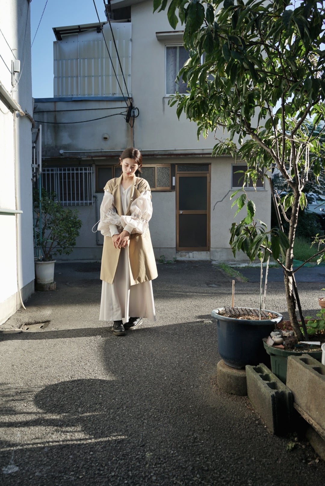 このワンピースも、袖のボリュームを使ってかなりユニークなシルエットを与えてくれる。