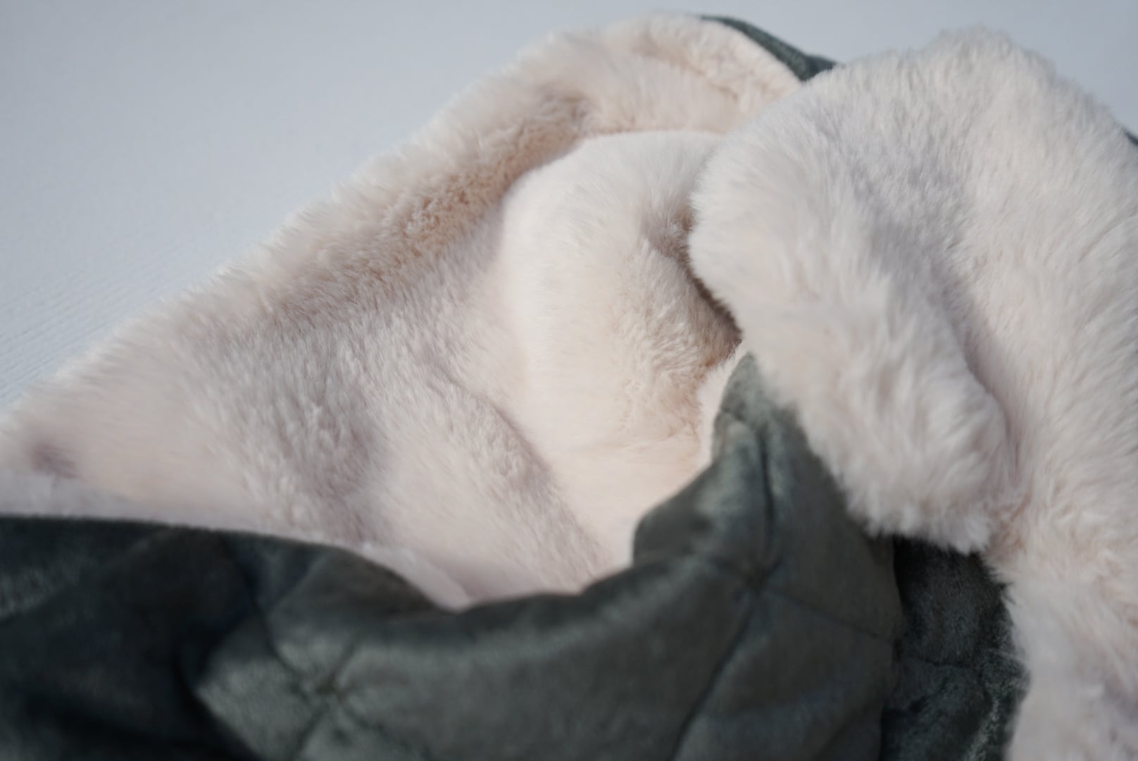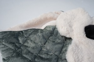 キルティングとファーの素材で構成されたこのマフラーは、両面どちらを表にしても使って頂ける2way仕様となる。